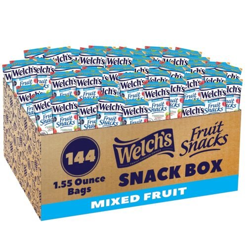 Welch’s Fruit Snacks, Mixed Fruit, Great for School Lunches, Bulk Pack, Individual Single Serve Bags, 1.55 oz (Pack of 144)