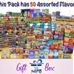 - Niro Gift basket made up of 50 packs of assorted snacks anf bars packaged in an extra special gift box