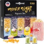 Pop n’ Dulge Popcorn Movie Night Supplies 16 pcs Gift Set, 5 Gourmet Popcorn Kernels, 5 Seasoning Variety Packs Non-GMO Kosher Snacks, Great Housewarming Family Date Night Gifts Basket Ideas For Him Her
