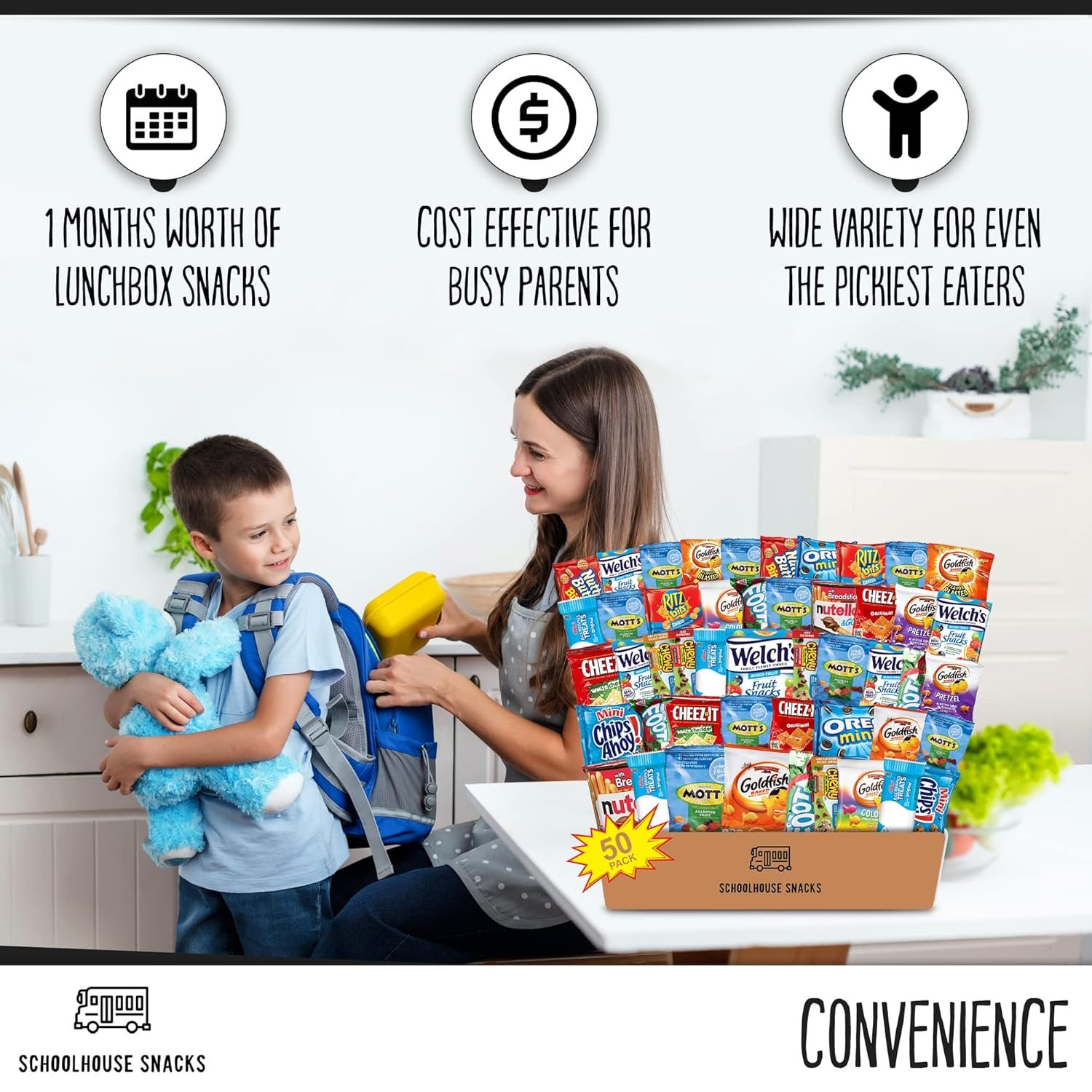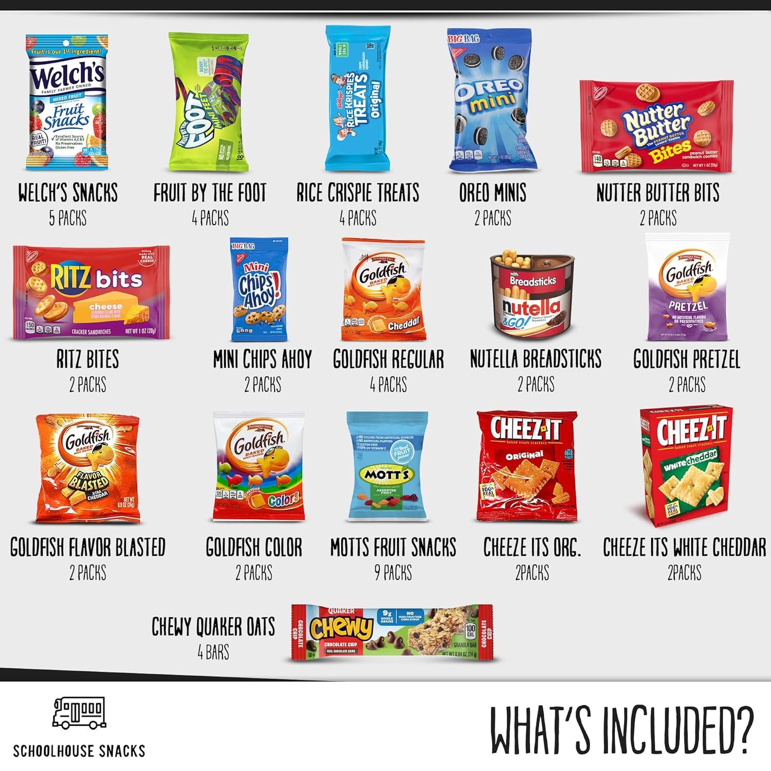 SCHOOLHOUSE SNACKS – Snacks for Kids (50 Count) | Snack Box for Kids with American Cracker and Cookie Assortment | Perfect Kids School Snacks, Variety Snack Box, Camp Care Package, Travel Food, Snack Gift Box