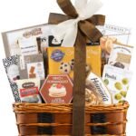 This tempting gift basket has been a customer favorite for over thirty-five years and once your lucky recipients dig in, they’ll know why! With chocolate brownie, sesame crackers, smoked Gouda cheese spread, chocolate caramels, raspberry and blackberry fruit jelly candy, vanilla fudge with sea salt, caramel corn and dark chocolate cookies, any foodie will find it hard to resist so many different sweet and savory treats. Gift Size: 12″ x 7″ x 10″
